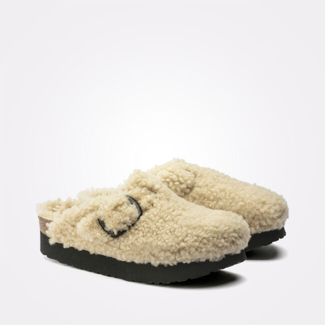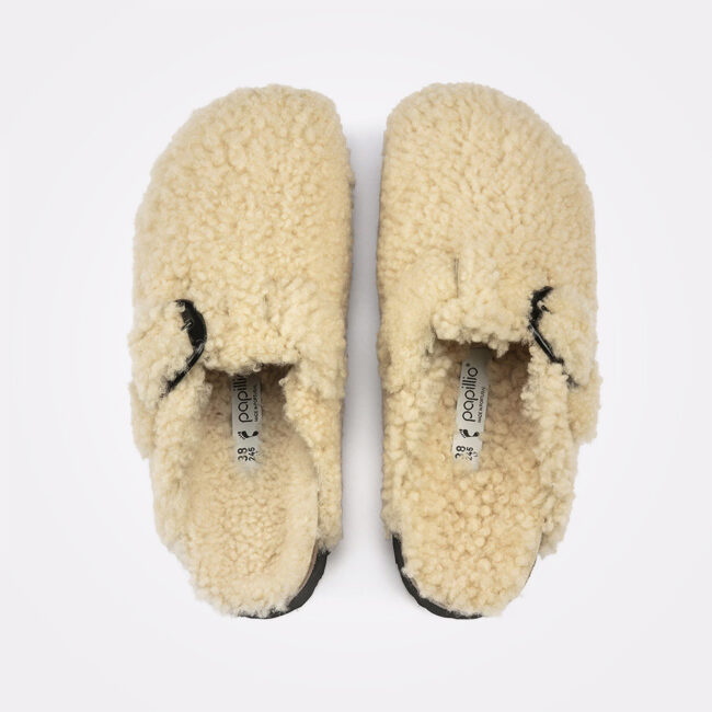 Evolucija klasičnog Boston modela. Papillio predstavlja klomp-papuče sa modernim platform đonom koji obezbeđuje maksimalnu udobnost pri svakom koraku. Ova verzija donosi toplo, autentično runo u Teddy stilu i veliku elegantnu kopču koja zaokružuje upečatljiv, ali izuzetno prijatan izgled. Gornjište je izrađeno od prirodnog ovčijeg runa sa postavom od mikrovlakana.