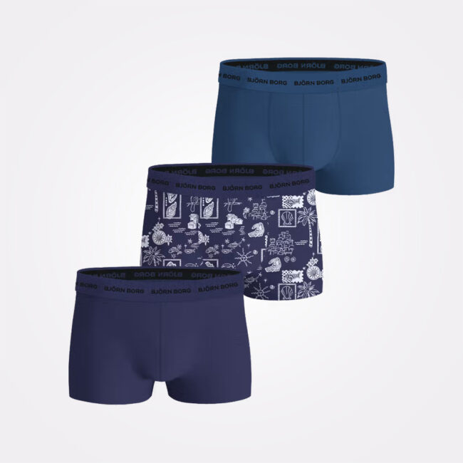 Björn Borg Cotton Stretch Trunk u pakovanju od tri komada donosi pouzdanu osnovu za svakodnevno nošenje, uz kombinaciju funkcionalnosti i čistog dizajna. Model je izrađen od pamuka sa dodatkom elastina, što omogućava mekan osećaj i fleksibilnost tokom celog dana. Srednje visok struk i trunk kroj pružaju stabilno prijanjanje i podršku, dok elastičan pojas sa mikrovlaknastim logotipom osigurava sigurno i udobno nošenje. Set u kombinaciji plave, tamnoplave i print varijante čini ga praktičnim izborom za svakodnevnu rotaciju.