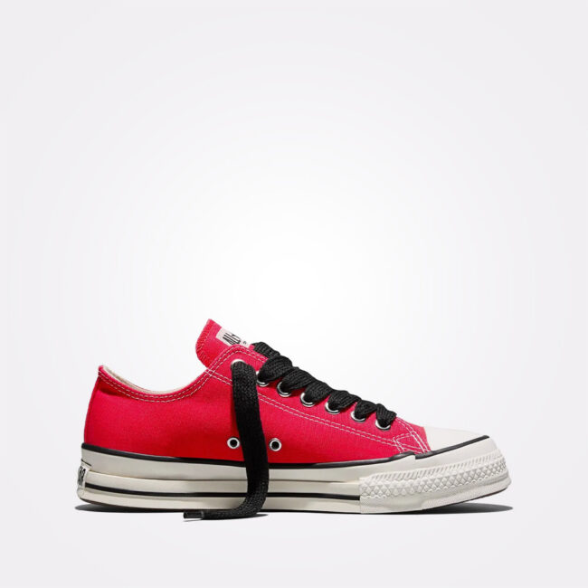 Do 1970. godine Chuck Taylor All Star je evoluirao u jednu od najboljih košarkaških patika ikada. Uzeli smo klasik 70-ih i gurnuli ga daleko izvan njegovih granica do rejv kulture 90-ih. Iscepkano gornjište izrađeno od oko 50% recikliranog pamuka otkriva psihodelični print, dok trostruko naslagana traka na peti doprinosi izobličenom izgledu. Kompletirane starim detaljima Chuck 70, kao što su sjajni srednji đon i vrhunske pamučne pertle.