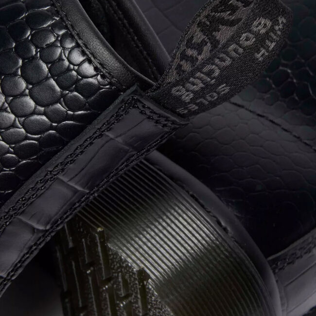 Model 1460 Croco predstavlja legendarnu siluetu u potpuno novom izdanju. Izrađen od sjajne kože sa krokodilskim efektnim, ovaj model zadržava sve prepoznatljive detalje originala, ali u monohromatskom stilu: crne rupice za pertle, crne pertle, crno-srebrna petna traka i crni šav oko đona.