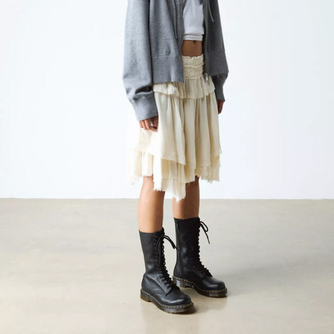 - Izrađene sa prepoznatljivim DNK-om Dr. Martens, uključujući udubljene ivice, vidljive šavove i petlju na peti