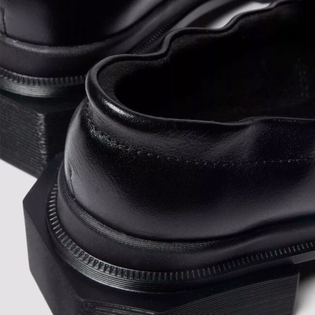 Dr. Martens Maybole loafer donosi sofisticiran izgled sa kvadratnim vrhom, sada u modernoj ruched slip-on verziji. Gornjište je izrađeno od elegantne, blago sjajne Milled Gloss kože, dok je đon uglavnom crn, ugaon i sa prepoznatljivim utisnutim žlebovima.