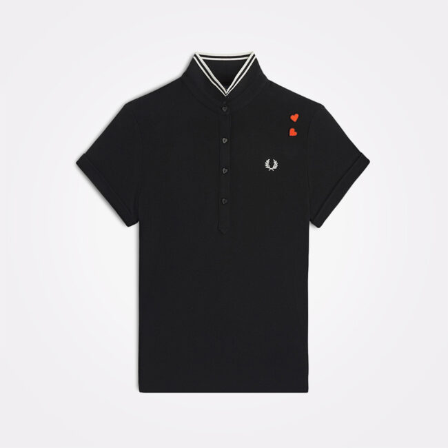 Polo majica sa uspravnom kragnom, izrađena od čistog pamučnog piquéa, upotpunjena izvezenim srcima uz prepoznatljive Fred Perry detalje. Deo kolekcije nastale u saradnji sa Amy Winehouse Foundation, ovaj model donosi sveden izraz u crnoj boji, sa diskretnim dizajnerskim akcentima. Inspirisana Amy i njenom vezom sa Fred Perry estetikom.