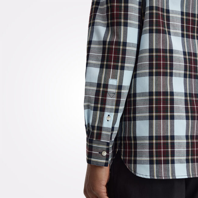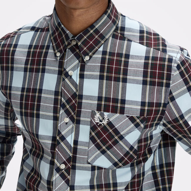 Košulja izrađena od čistog pamučnog poplina sa klasičnim tartan dezenom. Model ima kopčanje dugmadima, button-down kragnu i izvezeni Laurel Wreath logo na džepu na grudima. Tartan dezen predstavlja dugogodišnji deo Fred Perry nasleđa i povezuje različite subkulture kroz decenije.