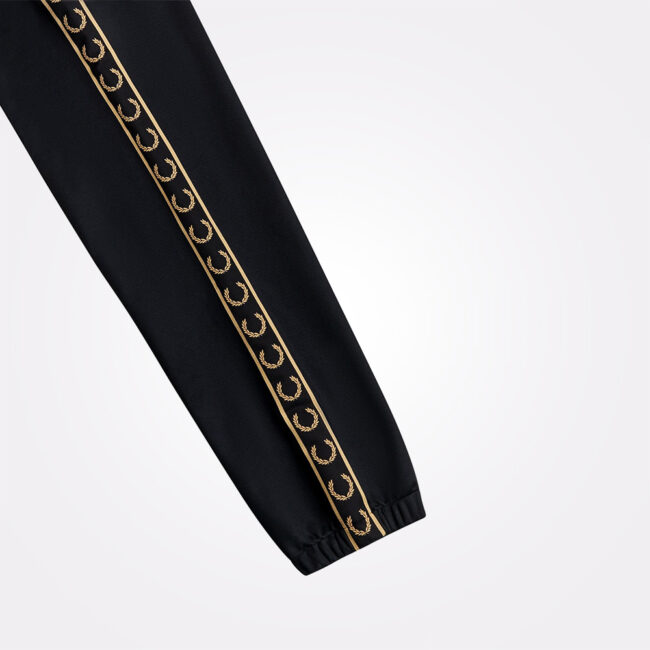 Fred Perry donji deo trenerke od trikota predstavlja osveženu verziju klasičnog modela, sa kontrastnim trakama duž nogavica i izvezenim Laurel Wreath znakom kao završnim detaljem. Model je dizajniran tako da se uklopi sa odgovarajućom track jaknom iz iste linije.