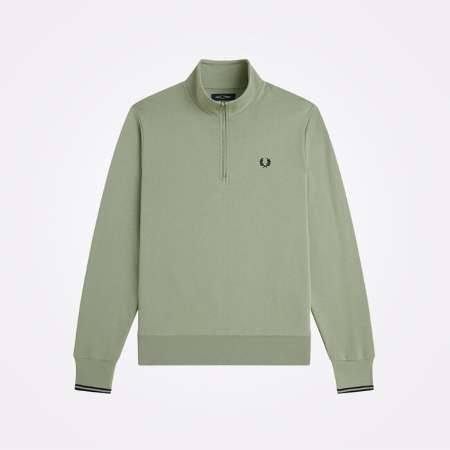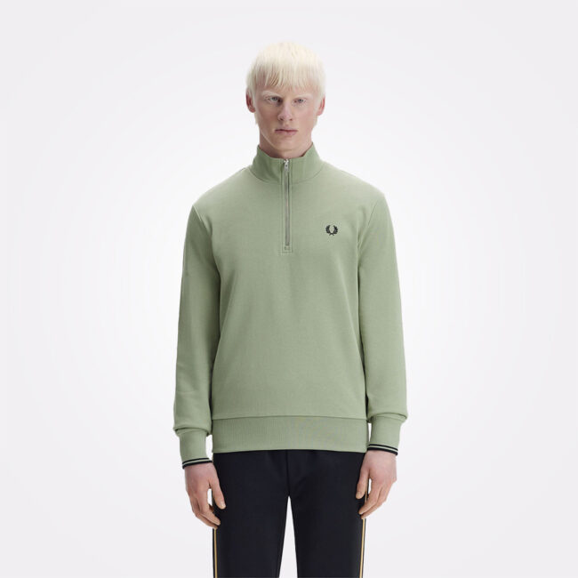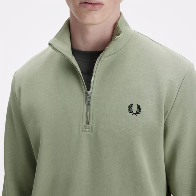 Dukserica izrađena od mekanog pamuka srednje debljine, pogodna za svakodnevno nošenje i slojevito oblačenje. Regular kroj pruža opušten, ali uredan izgled, dok half zip zatvaranje omogućava lako prilagođavanje tokom dana. Twin tipping detalj u prepoznatljivom 5-4-4 odnosu na manžetnama i izvezeni Laurel Wreath logo na grudima jasno upućuju na Fred Perry sportsko nasleđe, zadržano u jednostavnom i savremenom obliku.