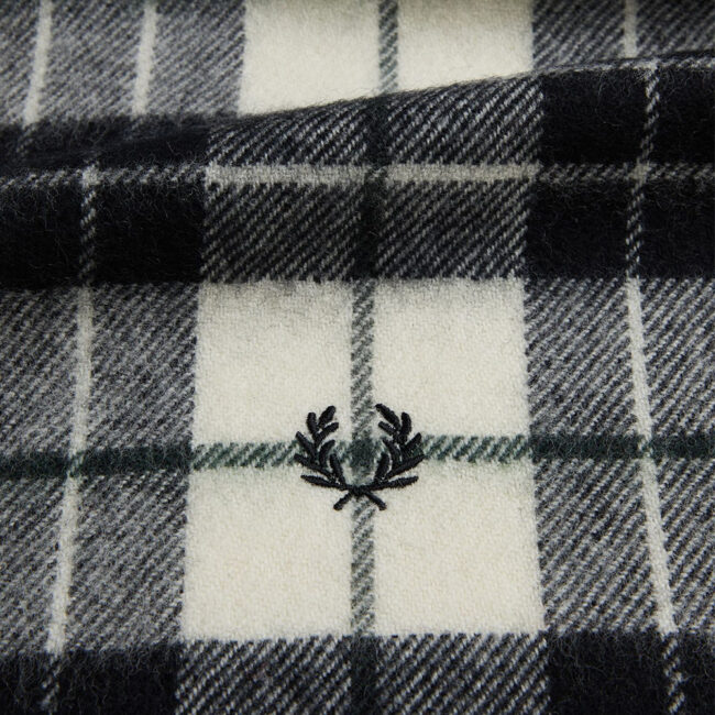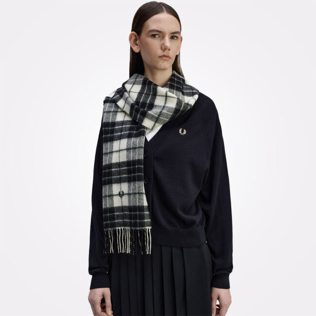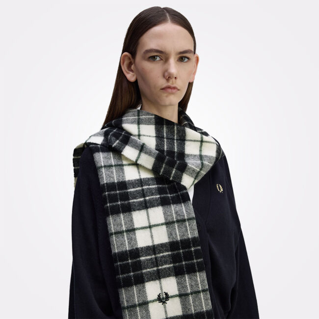 Tartan šal izrađen je u Škotskoj od čiste jagnjeće vune, mek na dodir i obogaćen prepoznatljivim Laurel Wreath vezom. Inspirisan buntovnim nasleđem tartana – od škotskih klanova do kamden panka – ovaj šal donosi bezvremensku kombinaciju odvažnih pruga i boja.