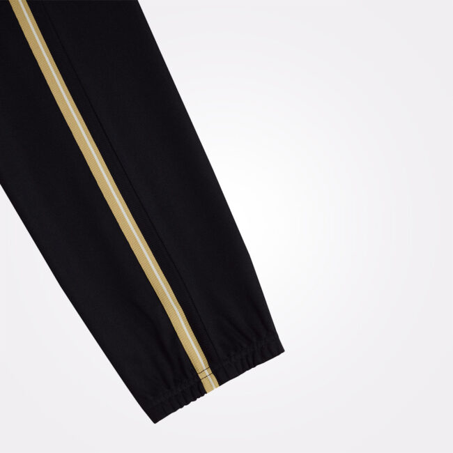 Donji deo trenerke dizajniran da prati odgovarajuću jaknu, sa novom stripe trakom u Black / Champagne kombinaciji. Inspirisan subkulturnim sportskim nasleđem, model kombinuje prepoznatljivu estetiku i savremene proizvodne metode. Laurel Wreath logo ostaje u prvom planu, naglašavajući identitet brenda kroz minimalistički, ali upečatljiv dizajn.