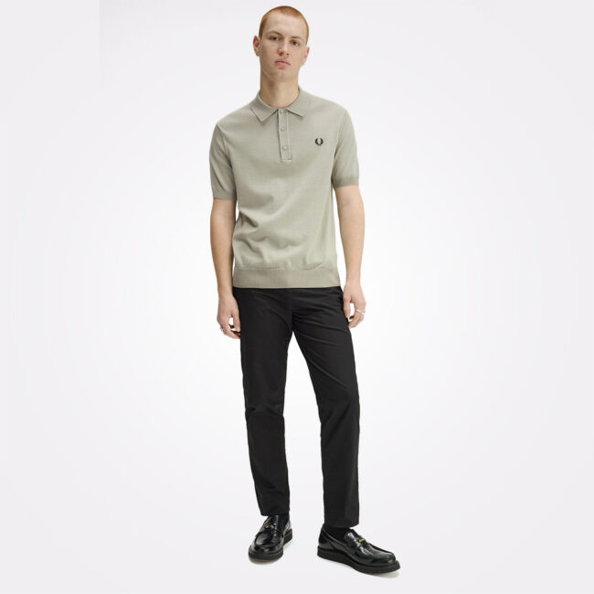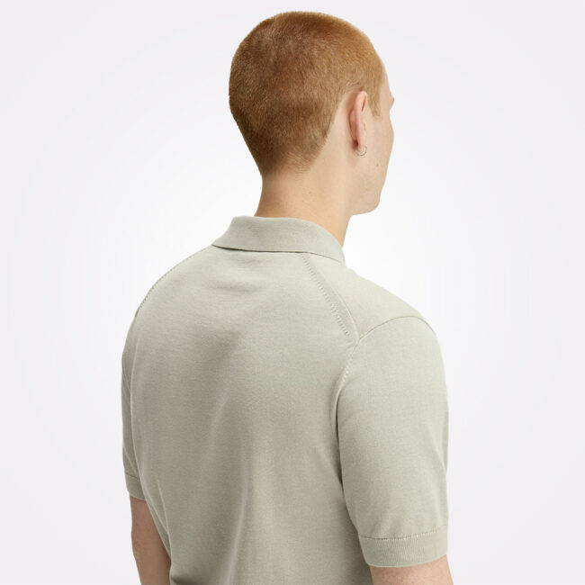 Pleteni model kratkih rukava izrađen od Supima® pamuka sa dugim vlaknima, sa kopčanjem na tri dugmeta i izvezenim Laurel Wreath logotipom na grudima. Model je završen rebrastim porubom i manžetnama.