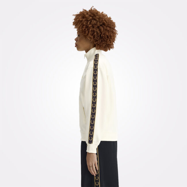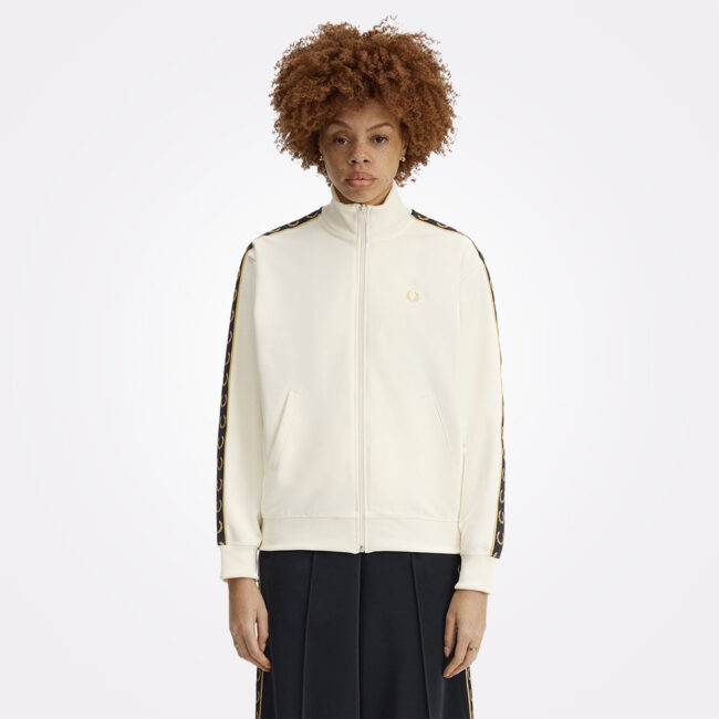 Opuštenija interpretacija jednog od najprepoznatljivijih Fred Perry modela. Klasična tricot trenerka zadržava prepoznatljive linije, sada u relaksiranijem kroju, uz kontrastne trake duž rukava i izvezeni Laurel Wreath na grudima. Tricot materijal, poznat po blagom sjaju i čistoj strukturi, povezuje sportsko nasleđe sa svakodnevnim nošenjem, ostajući veran estetici vintage sportsweara.
