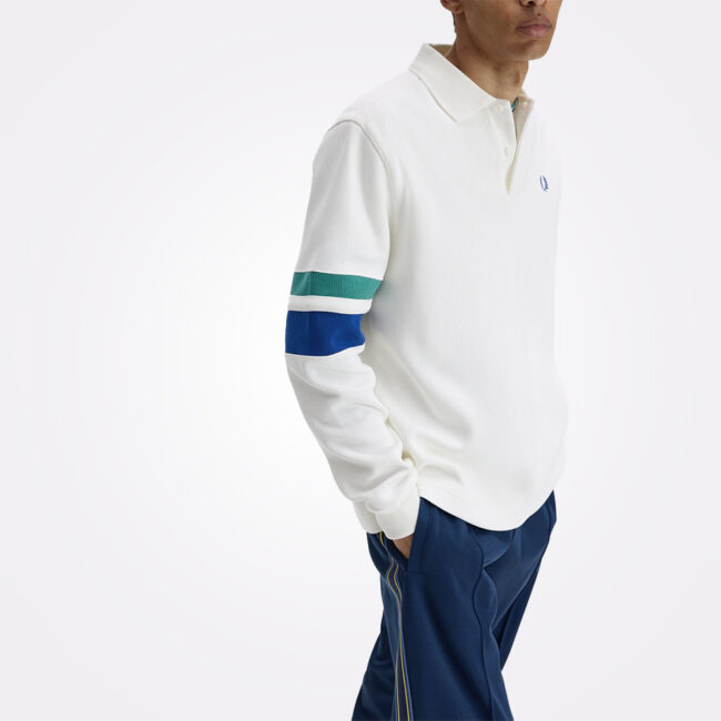 Fred Perry oživljava arhivski klasik kroz polo majicu dugih rukava sa tipped detaljima, donoseći prepoznatljivu estetiku sportweara devedesetih u čistom, savremenom izdanju. Izrađena od rebrastog pamuka, ovaj model kombinuje jasnu strukturu i lakoću nošenja, dok dugmad na kopčanju zadržava uredan i definisan izgled. Twin tipping detalj na rukavima i izvezeni Laurel Wreath znak na grudima jasno je pozicioniraju u DNK brenda – sportski inspirisanu, doteranu i nepogrešivo Fred Perry.