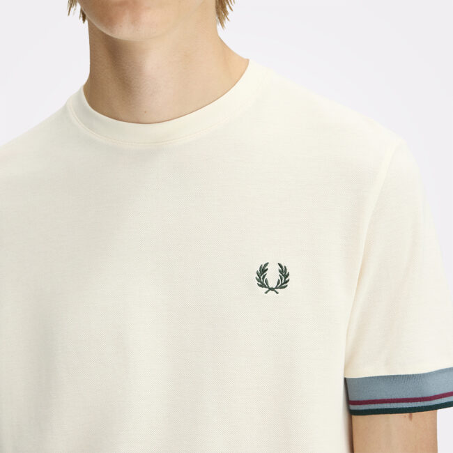 Klasična silueta reinterpretirana kroz prepoznatljive detalje brenda. Twin Tipped Cuff T-Shirt dolazi u Ecru nijansi sa kontrastnim twin tipping detaljima u Blue, Red i Green tonovima. Model je izrađen od laganog piqué pamuka i krojen u regular fit silueti sa kratkim rukavima i okruglim izrezom, pružajući čist i uravnotežen izgled za svakodnevne kombinacije.