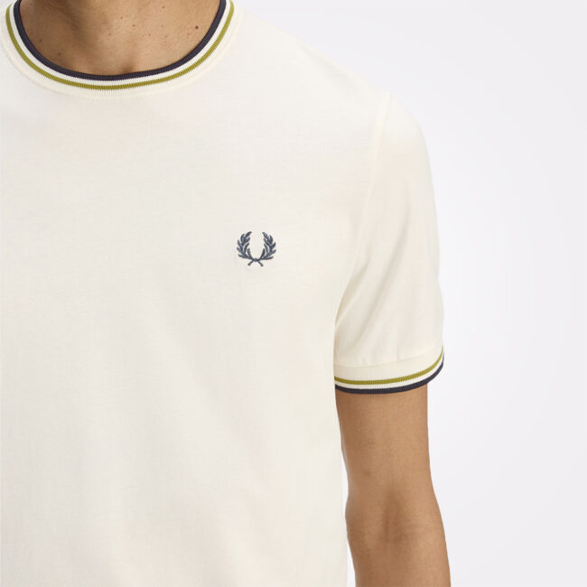 Jednostavna majica, klasičan kroj i prepoznatljiv detalj — ova twin tipped pamučna majica nastavlja tradiciju Fred Perry nasleđa. Izrađena od prijatnog pamučnog žerseja, ova majica regularnog kroja donosi savršenu ravnotežu između udobnosti i stila. Okrugli izrez i rukavi ukrašeni su čuvenim duplim linijama, dok kontrastni izvezeni Laurel Wreath logo na grudima dodaje prepoznatljiv Fred Perry pečat.