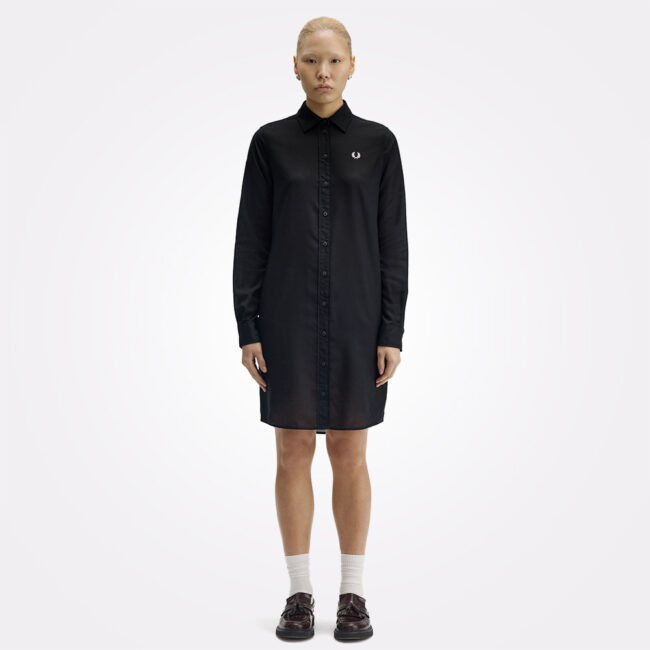 Spoj krojaškog pristupa i sportskih elemenata, ova košulja-haljina prilagođena je svakoj prilici – od teniskog terena do plesnog podijuma. Letnji favorit sa našivenim džepovima, rajsferšlusom duž cele dužine i prstenastim povlakačem koji evocira retro stil. Strukirano sečenje naglašava siluetu, dok izvezeni lovorov venac u dubokoj crnoj boji na kragni donosi prepoznatljiv Fred Perry pečat.