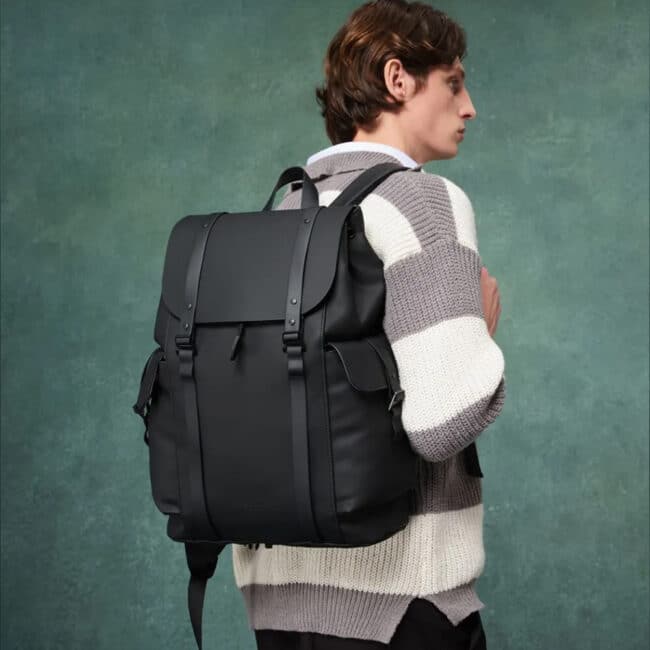 • Materijal: 100% reciklirani poliester sa poliuretanskim premazom; postava i trake od recikliranog poliestera