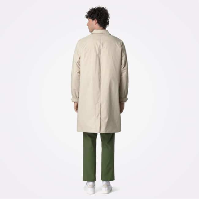 Montague je dugi muški mantil za kišu, osmišljen za one koji preferiraju elegantan i funkcionalan izgled. Idealan je za poslovna putovanja ili formalnije prilike tokom prelaznih sezona. Model pruža srednji nivo topline uz lagan i prijatan osećaj na koži. Napravljen od recikliranog ottoman najlona sa svežom, čvrstom teksturom, mantil ima kombinovano punjenje od guščjeg perja i poliestera, postavu od recikliranog najlona i pažljivo izvedene horizontalne prošive u unutrašnjosti.