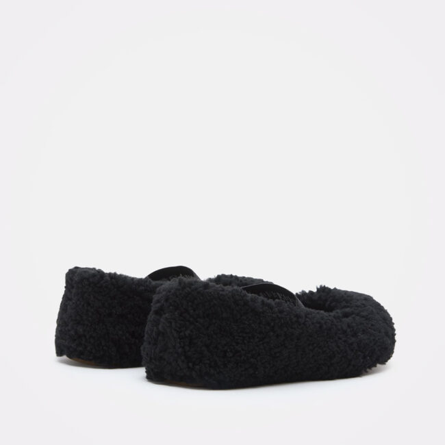Sezonski standout model koji klasičnu siluetu baletanki reinterpretira kroz luksuznu shearling kožu. Logo-print kaiševi daju upečatljiv akcenat, dok neočekivana kombinacija elegancije i urbanog izraza čini ovaj hibridnim izborom za različite prilike. Tanak gumeni đon prizemljuje izgled i obezbeđuje pouzdan osećaj pri svakodnevnom nošenju.