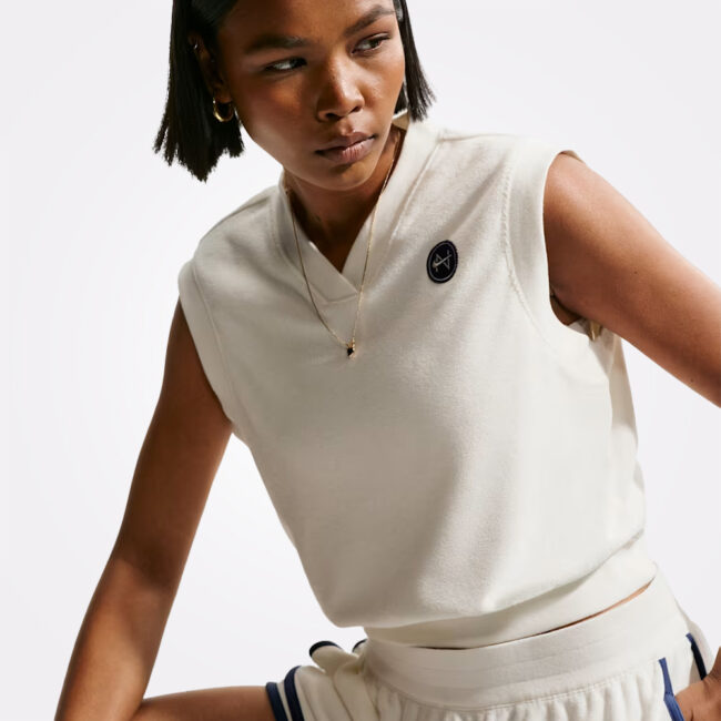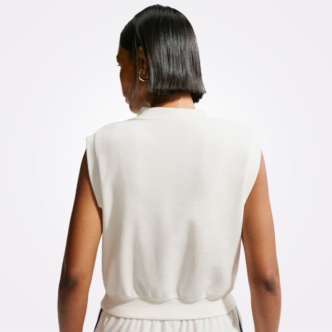 Ovaj Nike top donosi opušten “French terry” stil i lagan, sportski izgled. Izrađena je od mekane tkanine, dok V-izrez i rebrasti završeci daju strukturiran, ali ležeran izgled.