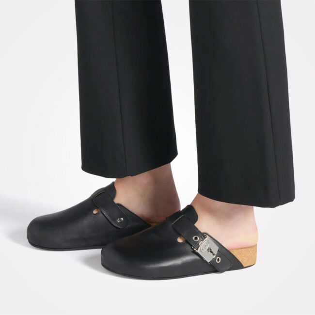 Luna je crna klompa od kože, čistih i elegantnih linija. Podesiva traka sa prepoznatljivom srebrnom kopčom omogućava precizno prilagođavanje stopalu, dok dodatno jastuče u zoni pete pruža još veću udobnost pri dužem nošenju. Izrađena u Italiji. Adapta® anatomski uložak prati prirodan oblik stopala i obezbeđuje podršku pri hodu.