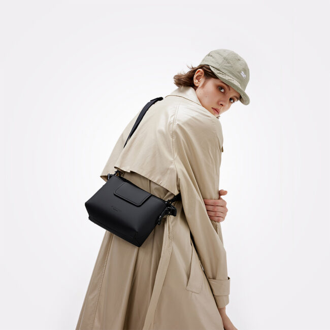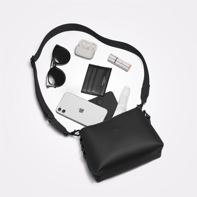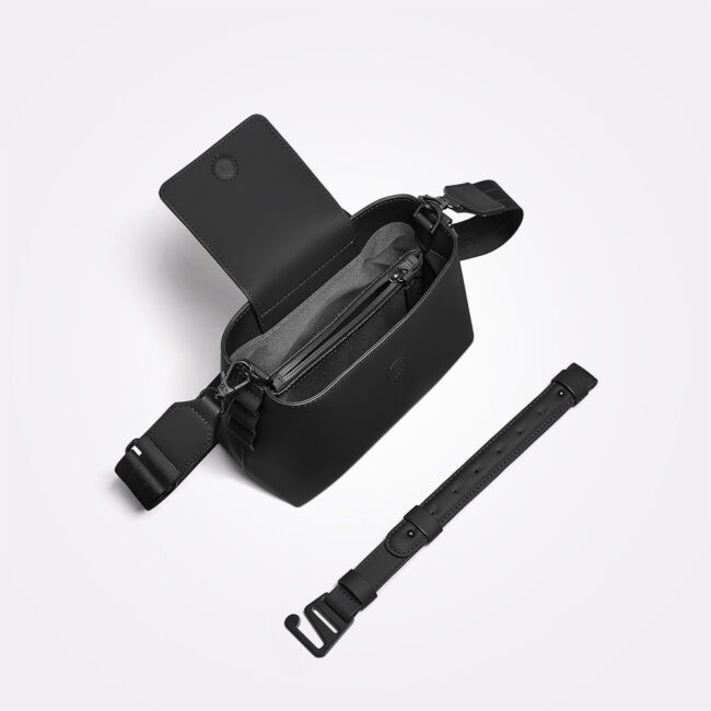 Inspirisana čistim arhitektonskim linijama i skulpturalnom estetikom, torba Spläshini je savršen izbor za dane u gradu ili večernje izlaske. Izrađena od premium vodootpornog materijala, sadrži preklop sa magnetnim zatvaranjem i unutrašnji džep sa rajsferšlusom za sigurno odlaganje neophodnih stvari. Može se nositi preko ramena, kao crossbody torba ili – uz skidanje kaiša – kao elegantna clutch varijanta.