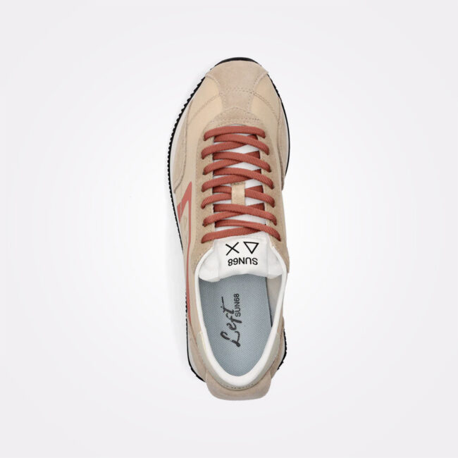 SUN68 Easy Runner donosi prepoznatljivu running siluetu kroz spoj brušene kože i najlona, stvarajući model koji prati savremeni casual izraz brenda. Dinamične linije i lagana konstrukcija čine ga pogodnim za svakodnevno nošenje, dok dekorativni cord detalj vezan za pertle sa oznakom „GIRLS RUN FASTER“ daje modelu karakterističan akcenat. SUN68 logo otisnut sa strane i lagani EVA đon dodatno naglašavaju sportski karakter modela. Boja: Beige.