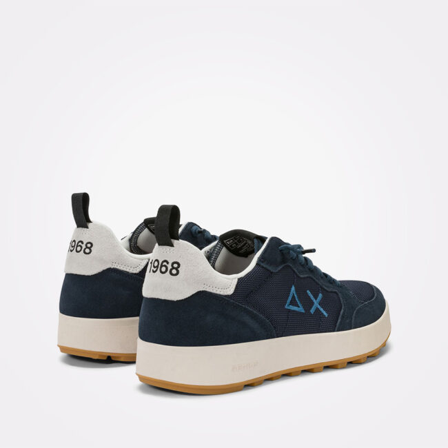 SUN68 Genius patike donose čistu i kompaktnu siluetu koja spaja sportski karakter i savremeni urbani izgled. Gornjište od najlona i brušene kože pruža laganu i izdržljivu konstrukciju, dok izvezeni SUN68 logo na bočnoj strani naglašava identitet brenda. Model je dopunjen praktičnom trakom na peti za lakše obuvanje i micro-mesh postavom koja doprinosi prozračnosti i udobnosti tokom nošenja. Gumeni cupsole đon sa reljefnim gazećim slojem obezbeđuje stabilnost i dobro prianjanje pri svakodnevnom kretanju. Boja: Navy Blue.