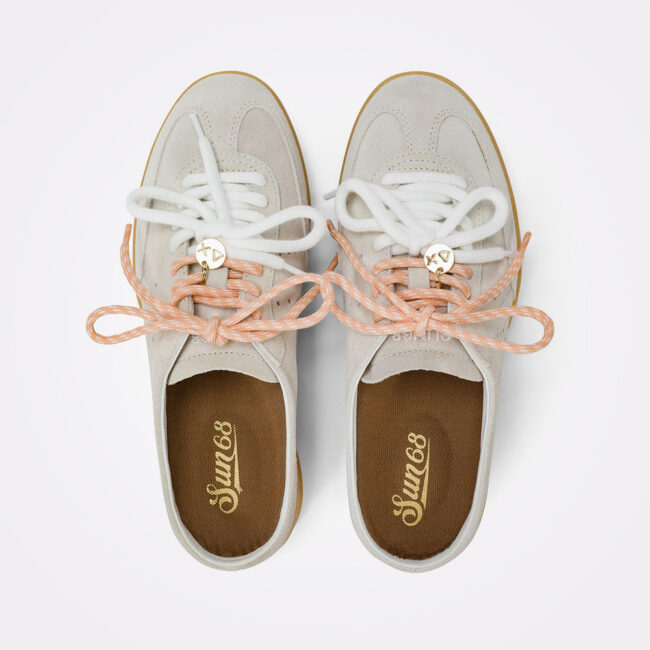 California Sun model dobija novu interpretaciju u sabot formi, zadržavajući prepoznatljiv tenis izgled uz opušteniji karakter. Gornjište od brušene kože prati čiste linije modela, dok kontrastne pertle i metalni SUN68 logo detalj daju suptilan vizuelni akcenat. Debossed SUN68 logo na bočnoj strani dodatno naglašava identitet brenda, dok kontrastni gumeni cupsole đon zadržava stabilnost i prepoznatljivu sportsku siluetu modela.