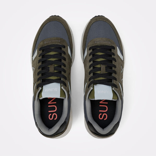 SUN68 Sun Daddy patike donose modernu running siluetu koja kombinuje laganu konstrukciju i čist, savremen izgled. Gornjište od najlona i brušene kože sa PU detaljima pruža balans između fleksibilnosti i stabilnosti, dok SUN68 logo na bočnoj strani jasno naglašava identitet brenda. Dizajnirane za dinamičan način života, patike nude slobodu kretanja i lako se uklapaju u svakodnevne kombinacije. Gumeni gazeći sloj dodatno obezbeđuje stabilnost i dobro prianjanje pri hodu. Boja: Military Green.