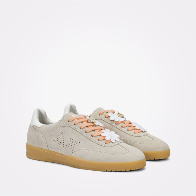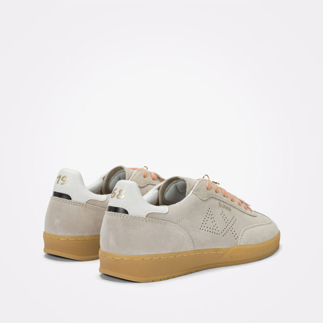 SUN68 California Sun patike reinterpretiraju klasičan bowling stil kroz modernu tenis siluetu. Gornjište od brušene kože daje modelu izraženiji karakter i premium osećaj, dok gumeni cupsole đon u prirodnom tonu naglašava retro inspiraciju. SUN68 logo na bočnoj strani i metalni brendirani detalj dodatno ističu identitet brenda, dok pamučne pertle zaokružuju čist i prepoznatljiv dizajn modela. Boja: Off White.