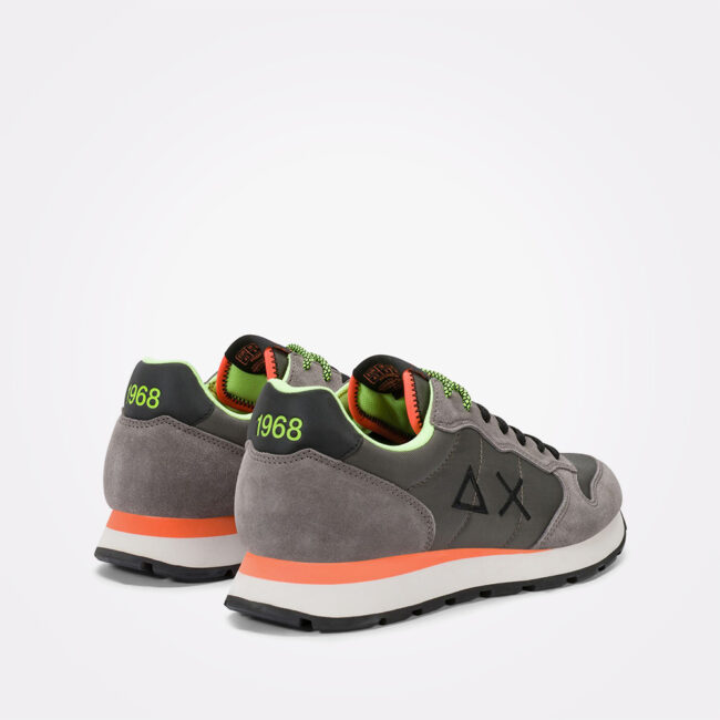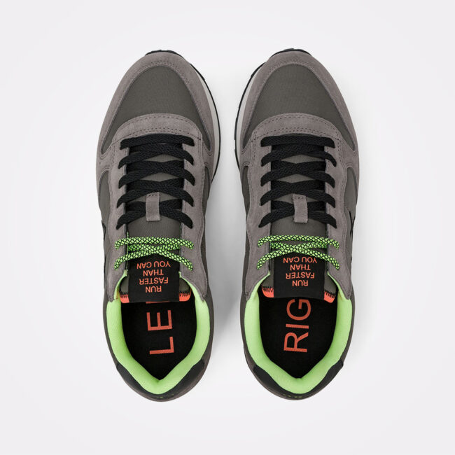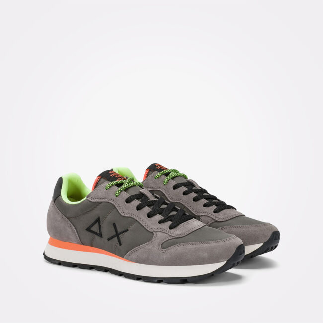 SUN68 Tom Fluo patike donose running siluetu koja spaja lagan sportski karakter i urbani izgled. Gornjište od najlona i brušene kože pruža prozračnu i stabilnu konstrukciju, dok fluorescentni detalji daju modelu izraženiji vizuelni akcenat. Izvezeni SUN68 logo na bočnoj strani naglašava identitet brenda, dok micro-mesh postava doprinosi udobnosti tokom nošenja. Ručno obrađen EVA đon sa gumenim gazećim slojem obezbeđuje stabilnost i dobro prianjanje pri svakodnevnom kretanju. Boja: Ink Black.