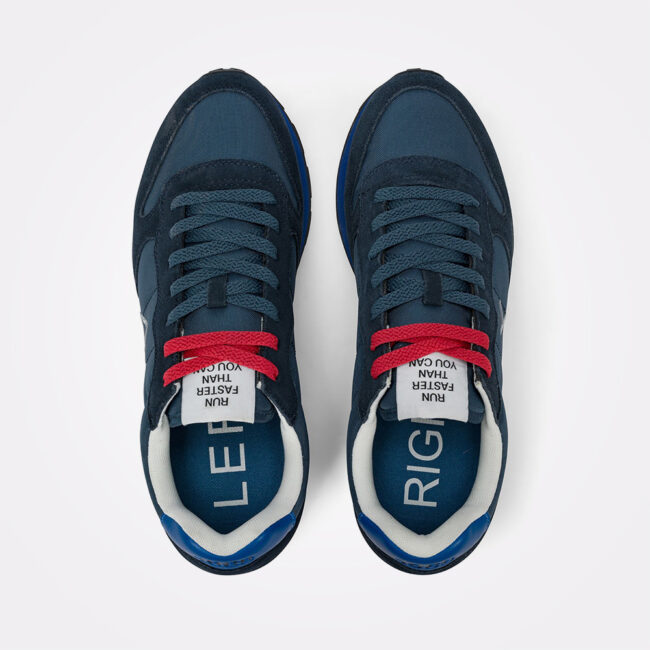 SUN68 Tom patike donose running inspiraciju kroz laganu konstrukciju i sportski dizajn koji se lako uklapa u svakodnevne kombinacije. Gornjište od najlona i brušene kože pruža balans između prozračnosti i strukture, dok izvezeni SUN68 logo na bočnoj strani jasno naglašava identitet brenda. Micro-mesh postava doprinosi prijatnom osećaju tokom nošenja, dok ručno obrađen EVA đon sa gumenim gazećim slojem obezbeđuje stabilnost i dobro prianjanje. Boja: Navy Blue / Dark Avio Blue.